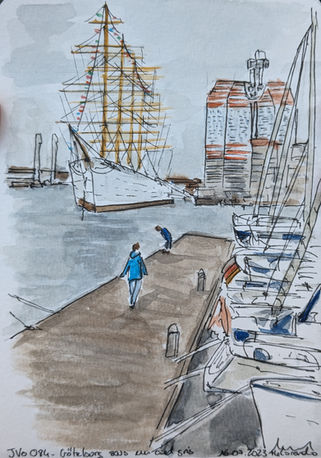 Par le passé ce fut des croquis Noir et Blanc mais mon dernier voyage m'a permis de me mettre à l'aquarelle dont les couleurs rendent assurément plus compte de l'atmosphère rencontrée !